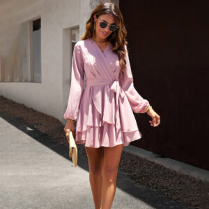 Vestido Lorena – De satén de manga larga con pliegues